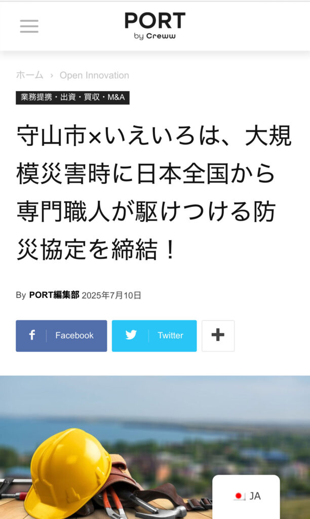 「守山市×いえいろは、大規模災害時に日本全国から専門職人が駆けつける防災協定を締結!」というタイトルで弊社の取り組みについてご紹介いただきました。
